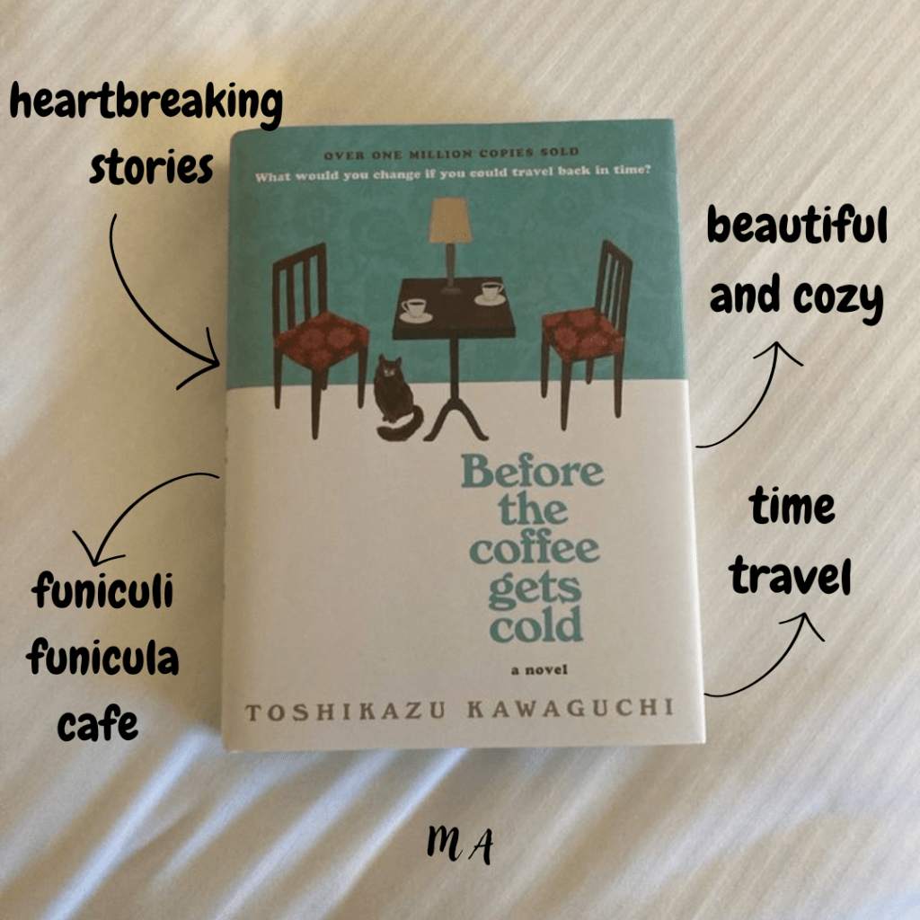 I always loved books and movies that let me experience time travel because of the mistakes I have made in the past, which I can’t rectify but seeing fictional characters getting the chance makes me imagine myself in their place and I feel happy. Before the Coffee Gets Cold is the first book in the series and when I heard it’s Japanese coffee-themed and time travel I knew I needed to read this book and I’m glad I picked this up. So basically this book talks about a funiculi funicula cafe in a small back alley in Tokyo that has been serving brewed coffee for more than one hundred years. But with coffee, they allow their customers a unique experience and what is that? The chance to travel back in time. But there is a catch, a risk certain rules that need to be followed for the person to go back in time. And I am not going to tell you because it’s the main thing and experience that you need to find out by reading the book. The book follows four visitors who want to make things right using the cafe’s time-travelling offer.