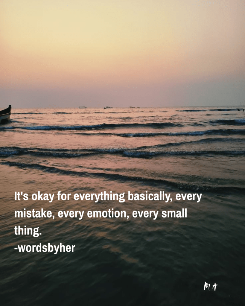 These two words are so powerful that they make everything better for me. It’s okay for everything basically, every mistake, every emotion, every small thing. It’s okay if a mistake is made; you don’t need to put pressure on yourself. It’s very common to fear that everything will now be over after making a mistake. But that’s not like it; nobody is perfect, however experienced one is, mistakes are inevitable. Reassurance is so important, and nobody does it; it’s you who has to do it for yourself. It’s okay to make mistakes and learn from them. Everything in the end works out perfectly because a mistake doesn’t mean everything is lost or finished. I tell myself this sentence so many times, and it definitely gives me the courage to handle it smoothly without compromising my mental health. Nothing is ever bigger than my mental health, and I need to protect it. Mistakes are inevitable, but how we handle them is crucial. It comes with time, where we get used to knowing how to correct it. It’s okay for literally everything; we as humans are meant to live a life that we enjoy. Putting pressure on mental health will do nothing good except that it will make everything worse. Take time, look at how the mistake can be fixed and just go with the flow. It’s going to be alright, every situation passes away, and we know we can handle it. Just don’t make a huge deal out of it, understand it and then smoothly work through it. Tell yourself it’s okay, everything is going to be fine. Life is like that; moments pass away, and we learn how to live through them. So whatever is happening in your life, I hope it’s all good, but if you are unable to express yourself. I am here telling you that it’s okay, everything happens for a reason, just be brave, have courage, and everything will be okay.