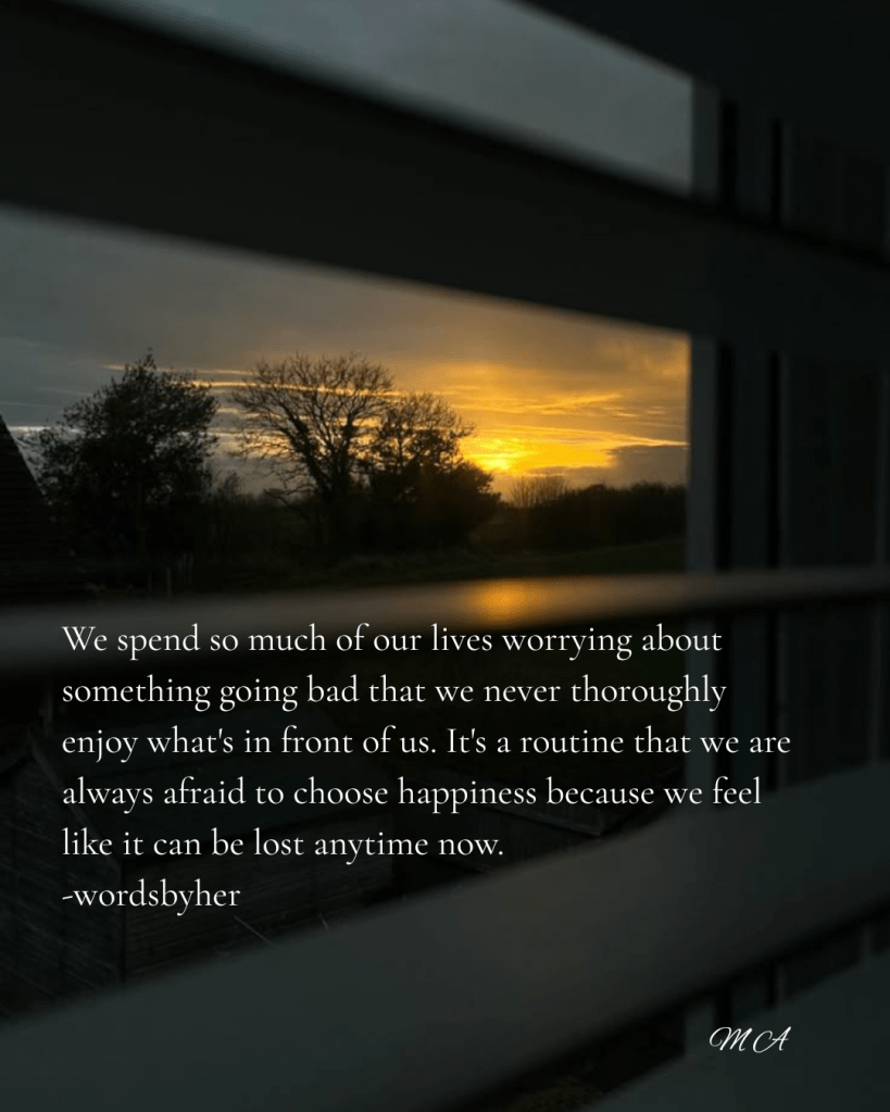I have grown up watching so many dramas where the leads are happy for some time, and then something major will happen, ruining their life. In almost all dramas, there is a fear that happiness is short-lived. And this also kind of resonates with real life. We are always in constant distress that happiness will not last long. Maybe celebrating too much will lead to bad things and so much more. Actually, we take a lot of tension to be happy, which is such an irony. Nowadays, happiness is short-lived because we are in constant tension of the next step and the challenges it’s going to bring. We never really sit down and thoroughly enjoy the happiness; we are just rushing to the next thing. Well, what can we do with the constant demand of the world to do better and more? I read somewhere that we spend so much of our lives worrying about something going bad that we never thoroughly enjoy what’s in front of us. It’s a routine that we are always afraid to choose happiness because we feel like it can be lost anytime now. However, this is life, with phases at every moment, but that doesn’t mean we don’t deserve happiness. I think we need to let go and just go with the flow. I know it’s tough to stop thinking about the future and worrying about it, but when living in the present is more sensible than worrying about the future. Don’t be afraid to celebrate every little win of your life; it’s your moment, and you deserve to appreciate yourself. Who is going to celebrate you winning if not you? Ignore the voice that constantly makes you worry, but start listening to your heart and appreciate yourself for everything. Feeling afraid is inevitable; however, we can’t live like this, learn to enjoy every single win of your life by leaving behind the stress of the future.