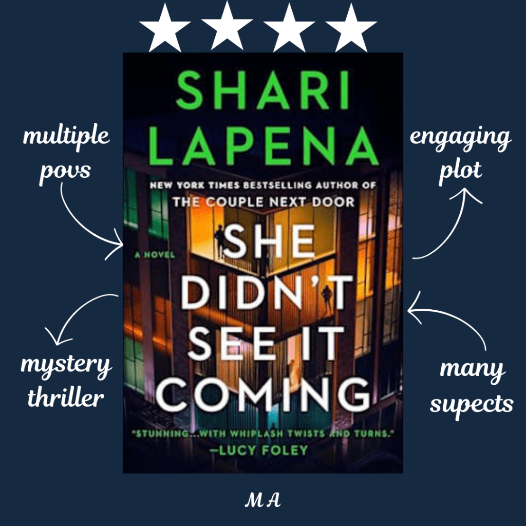 Another day, another thriller. I have been hearing about Shari Lapena and her popcorn thrillers for a long time, and I thought this was the right time to give her books a shot. I started with her book She Didn’t See It Coming, which follows the story of a perfect couple, Bryden and Sam. They have their careers thriving and are surrounded by the right people. However, it is not always true what our eyes see, right? One day, suddenly, Bryden disappeared, leaving behind everything. And slowly, the detectives and the readers come to understand the reality of being a perfect family.
