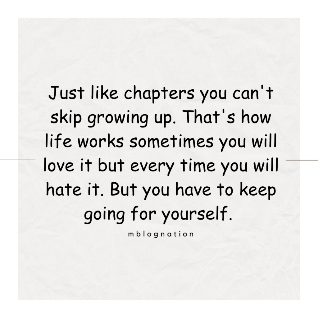 When we grow up we truly understand that materialistic things value nothing but emotion and peace of mind is so important that things don’t have any price then too it’s the most expensive to have. Focusing on yourself is very hard as an adult but please see yourself above others, understand that your life matters the most and stop caring about people, it will take time but trust me it will be worth understanding things that you don’t realize until you grow up!